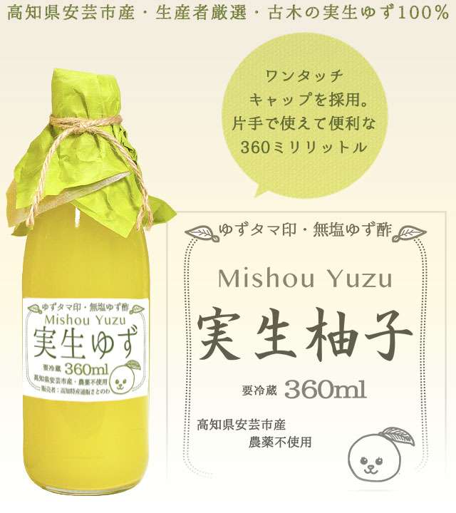 ゆずタマ印の実生柚子360ml 無塩 ゆず酢