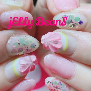 お客様ネイル夏らしくて可愛い ネイル ネイルデザイン ネイルアート 神戸ネイル 神戸ネイルサロン 夏ネイル ビタミンカラー オレンジ ピンクグレープフルーツ キラキラネイル ぷっくりネイル トレンドネイル 岡本ネイルサロン 岡本 神戸 神戸岡本